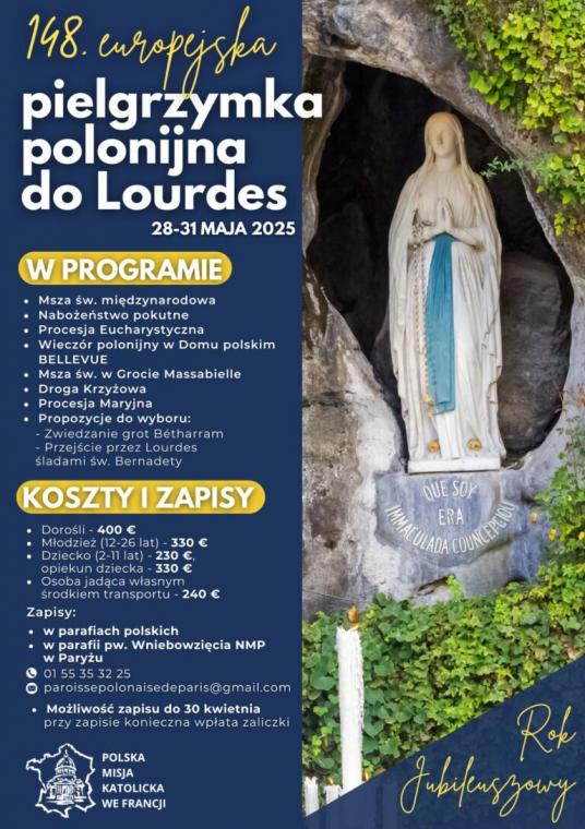W programie pielgrzymki znalazły się m.in.: Msza św. międzynarodowa w podziemnej bazylice św. Piusa X, Msza św. w Grocie Massabielle, Procesja Eucharystyczna, Droga Krzyżowa i wieczór polonijny w Domu polskim Bellevue. Będzie również możliwość przejścia przez Lourdes śladami św. Bernadety i zwiedzania grot Bétharram – jednej z największych atrakcji turystycznych w regionie.