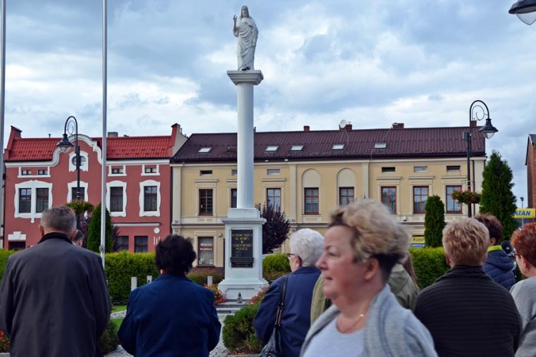 Dzień ten był szczególny jeszcze z jednego powodu. W tym dniu ze wszystkich zakątków świata popłynęła ku niebu modlitwa Koronką do Miłosierdzia Bożego na ulicach miast. Wielkie wołanie „o miłosierdzie dla nas i świta całego” popłynęło ku niebu z różnych miejsc. Mikstacka parafia włączyła się w tę modlitwę po raz piąty. O godzinie 15:00 pod przewodnictwem ks. proboszcza Krzysztofa Ordziniaka spotkaliśmy się na Rynku przy pomniku Najświętszego Serca Pana Jezusa. To szczególne i ważne miejsce dla naszej wspólnoty. Został on poświęcony 12 lipca 1936 roku. To wtedy ówczesny burmistrz p. Franciszek Toboła wypowiedział słowa Aktu poświecenia się miasta Najświętszemu Sercu Jezusa.