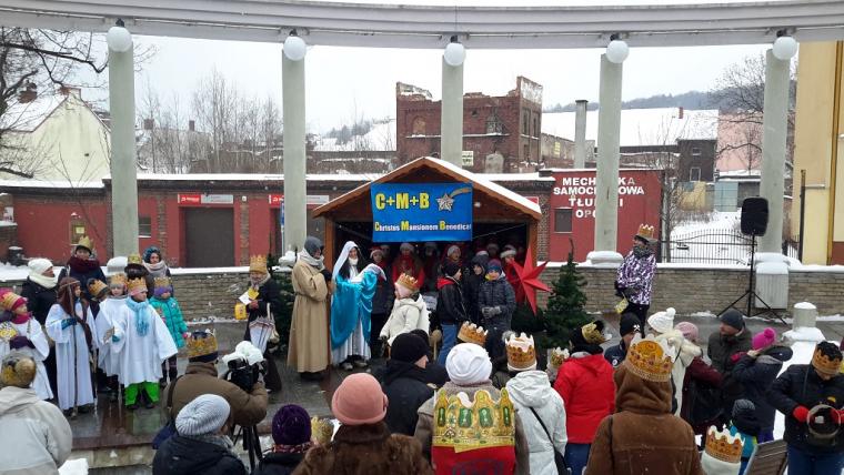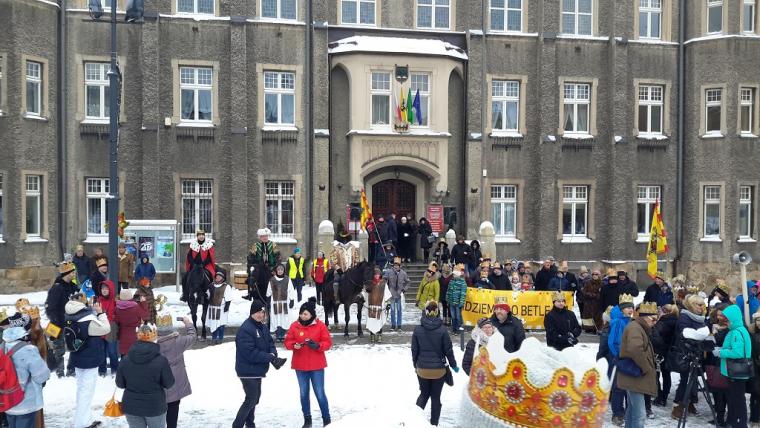 Ulicami Wałbrzycha przemaszerował dziś Orszak Trzech Króli ,organizowany jak co roku przez Fundację Orszak Trzech Króli. Współorganizatorami były władze Wałbrzycha oraz Szczawna Zdroju pod przewodnictwem Prezydenta Miasta Wałbrzycha - dr. Romana Szełemeja, wałbrzyskie parafie, a w szczególności organizacje katolickie, którym przewodniczył ks. prałat dr Krzysztof Moszumański, proboszcz parafii p.w. Niepokalanego Poczęcia NMP w Wałbrzychu. Wydarzenie rozpoczęło się o godz. 11.00 Mszą św. w parafii św. Aniołów Stróżów. Po Eucharystii przy kolegiacie uformował się orszak, który prowadzili siedzący na koniach trzej królowie: Kacper, Baltazar oraz Melchior. Orszak zatrzymał się u Heroda, który przywitał ich na wałbrzyskim Rynku. Scenka ta została odtworzona przez Prywatne Gimnazjum i Liceum Sióstr Niepokalanek w Wałbrzychu. Z Rynku trzej królowie wspólnie ze swoim orszakiem udali się do Miejskiego Ratusza, gdzie odbył się na ich cześć program wizualno-muzyczny, zorganizowany przez gimnazjum im. Korczaka w Wałbrzychu. Przemierzając ulice miasta orszak dotarł do swojego celu, tzn. do szopki Betlejemskiej. Odnalazł tam nowo narodzone dziecko z Matką Najświętszą oraz św. Józefem . Trzej królowie pokłonili się św. Rodzinie oraz wręczyli dary. Hołd, jaki złożyli Mędrcy ze Wschodu, jest znakiem, że i poganie zostali powołani do przyjęcia wiary. Część oficjalną wydarzenia zakończyły podziękowania ,złożone przez ks. prałata Krzysztofa Moszumańskiego wszystkim tym, którzy swoim zaangażowaniem przyczynili się do wspaniałej oprawy tego przedsięwzięcia. Lista była długa: począwszy od władz Wałbrzycha, Szczawna Zdroju, poprzez stadninę koni Książ, Teatr Dramatyczny im. Jerzego Szaniawskiego w Wałbrzychu, organizacji katolickich, szkół. Słowa podziękowania złożył dr Roman Szełemej, który wykorzystał tę okazję do wręczenia nagrody laureatom konkursu na najpiękniejszą szopkę Bożonarodzeniową. Około godziny 13.00 ks. prałat pobłogosławił licznie zebrane osoby. Po części oficjalnej piosenka Arki Noego "Świeć, gwiazdeczko, świeć" rozpoczęła wspólne radosne świętowanie poprzez śpiew wydarzenia przybycia trzech króli do szopki Betlejemskiej. Ulicami Wałbrzycha przemaszerował dziś Orszak Trzech Króli ,organizowany jak co roku przez Fundację Orszak Trzech Króli. Współorganizatorami były władze Wałbrzycha oraz Szczawna Zdroju pod przewodnictwem Prezydenta Miasta Wałbrzycha - dr. Romana Szełemeja, wałbrzyskie parafie, a w szczególności organizacje katolickie, którym przewodniczył ks. prałat dr Krzysztof Moszumański, proboszcz parafii p.w. Niepokalanego Poczęcia NMP w Wałbrzychu. Wydarzenie rozpoczęło się o godz. 11.00 Mszą św. w parafii św. Aniołów Stróżów. Po Eucharystii przy kolegiacie uformował się orszak, który prowadzili siedzący na koniach trzej królowie: Kacper, Baltazar oraz Melchior. Orszak zatrzymał się u Heroda, który przywitał ich na wałbrzyskim Rynku. Scenka ta została odtworzona przez Prywatne Gimnazjum i Liceum Sióstr Niepokalanek w Wałbrzychu. Z Rynku trzej królowie wspólnie ze swoim orszakiem udali się do Miejskiego Ratusza, gdzie odbył się na ich cześć program wizualno-muzyczny, zorganizowany przez gimnazjum im. Korczaka w Wałbrzychu. Przemierzając ulice miasta orszak dotarł do swojego celu, tzn. do szopki Betlejemskiej. Odnalazł tam nowo narodzone dziecko z Matką Najświętszą oraz św. Józefem . Trzej królowie pokłonili się św. Rodzinie oraz wręczyli dary. Hołd, jaki złożyli Mędrcy ze Wschodu, jest znakiem, że i poganie zostali powołani do przyjęcia wiary. Część oficjalną wydarzenia zakończyły podziękowania ,złożone przez ks. prałata Krzysztofa Moszumańskiego wszystkim tym, którzy swoim zaangażowaniem przyczynili się do wspaniałej oprawy tego przedsięwzięcia. Lista była długa: począwszy od władz Wałbrzycha, Szczawna Zdroju, poprzez stadninę koni Książ, Teatr Dramatyczny im. Jerzego Szaniawskiego w Wałbrzychu, organizacji katolickich, szkół. Słowa podziękowania złożył dr Roman Szełemej, który wykorzystał tę okazję do wręczenia nagrody laureatom konkursu na najpiękniejszą szopkę Bożonarodzeniową. Około godziny 13.00 ks. prałat pobłogosławił licznie zebrane osoby. Po części oficjalnej piosenka Arki Noego "Świeć, gwiazdeczko, świeć" rozpoczęła wspólne radosne świętowanie poprzez śpiew wydarzenia przybycia trzech króli do szopki Betlejemskiej.