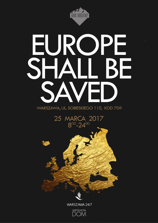 Zapraszamy na Górę Modlitwy „Europe shall be saved”. 25 marca 2017 r. w godz.  8:00-24:00. Dom Modlitwy Warszawa 24/7 ul. Sobieskiego 110 70#