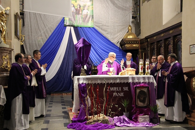 W homilii celebrans podkreślał, że potrzeba dużo odwagi, aby wybrać się na drogę krzyżową Chrystusa. - Jest to odwaga wiary człowieka, który wie, że uczestniczy w tajemnicy Bożego Miłosierdzia i Bożej Wszechmocy – mówił bp Janiak. Prosił wiernych, aby nie wstydzili się krzyża. - Krzyż ma być dla nas przedmiotem wielkiej czci, kultu, adoracji. Codziennie spoglądajmy na krzyż. Nie wstydźmy się ucałować krzyża przed spaniem i po obudzeniu – zachęcał kaznodzieja. Wskazywał, że tylko przy krzyżu Chrystusa cierpienie ma sens. – Przychodźmy z naszymi krzyżami pod krzyż Jezusa, a przecież krzyży nam nie brakuje. Często przechodzimy przez ciemne doliny, niejednokrotnie jesteśmy przygnębieni, zmartwieni, nawet schorowani. Jeśli z wszystkim swoimi bolączkami przyjdziesz pod krzyż Chrystusa, to On spojrzy na Ciebie, On Ci pomoże i nada cierpieniu sens zbawczy. Tylko przy krzyżu Chrystusa cierpienie ma sens. Wyruszając w tę Ekstremalną Drogę Krzyżową miejmy przed oczyma tajemnicę krzyża Chrystusowego i tajemnicę cierpienia – powiedział biskup kaliski.