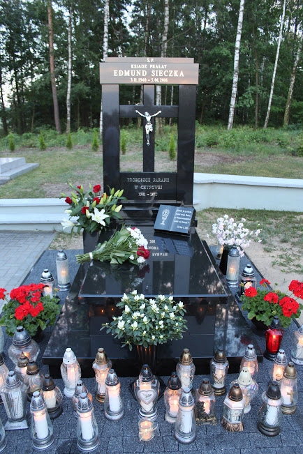 Na drugą część uroczystości upamiętniającej rocznice śmierci Kapłana Edmunda, ks. kanonik Przemysław Talaga sprawujący obecnie posługę proboszcza w parafii w Chynowej zaprosił wszystkich obecnych na cmentarz, gdzie poświęcono nagrobek Śp. Ks. Prałata Edmunda Sieczki. Został on ufundowany wspólnie przez rodzinę Ś.p. Kapłana i wspólnotę parafialną.