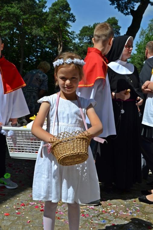 Po Mszy Świętej przed wystawionym Najświętszym Sakramentem, odmówiliśmy Litanię do Serca Jezusowego. Następnie wraz z Jezusem ukrytym pod postacią Chleba wyruszyliśmy w procesji do czterech ołtarzu. Krzyż, chorągwie, feretrony, poduszki z emblematami religijnymi niesione przez dzieci poprzedzały w procesji Jezusa ukrytego pod postacią Chleba niesionego w monstrancji. Tuż przed kapłanem niosącym monstrancje szły dziewczynki sypiące kwiatki. Pięknie przygotowane zostały ołtarze.