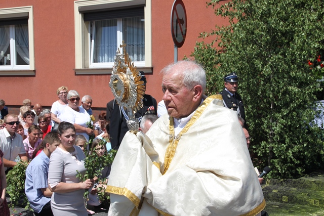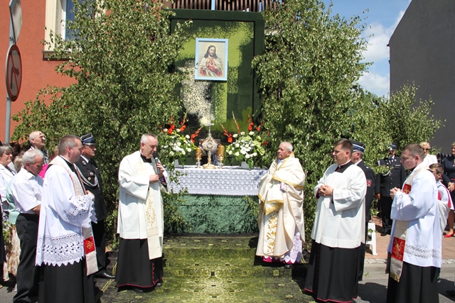 Po Mszy św. wyruszyła procesja do czterech ołtarzy, którą prowadził bp Stanisław Napierała. Przy czwartym ołtarzu na placu Wolności biskup udzielił błogosławieństwa Najświętszym Sakramentem na cztery strony świata.