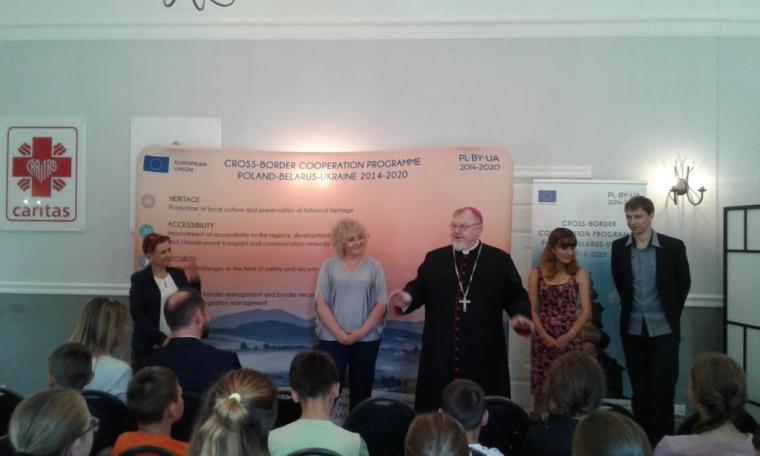 Spotkanie rozpoczął gospodarz, ks. kan. dr Łukasz Gołębiewski Dyrektor Caritas Diecezji Drohiczyńskiej, który przywitał zebranych gości: ks. bpa Antoniego Dydycza – biskupa seniora diecezji drohiczyńskiej, Marię Koc – Wicemarszałek Senatu RP, Tomasza Jędrzejewskiego – zastępcę Kierownika Wspólnego Sekretariatu Technicznego Polska-Białoruś-Ukraina, Agnieszkę Ćwikłę – specjalistę do spraw komunikacji w tymże programie oraz ks. kan. dra Romualda Koska, proboszcza parafii poklasztornej w Węgrowie. Ksiądz Biskup wyraził radość, że po raz kolejny dzieci zza wschodniej granicy goszczą na terenie diecezji, podkreślił, że tego rodzaju inicjatywy są szczególnie ważne, bowiem dzieci i młodzież mogą się wzajemnie poznawać, swoje kultury, zwyczaje i obyczaje. Głos zabrała również Maria Koc, która podkreśliła wymiar wzajemnej integracji w kształtowaniu osobowości, pomiędzy uczestnikami Akademii pochodzącymi z różnych krajów. W imieniu wszystkich zebranych Wicemarszałek Senatu RP złożyła życzenia ks. bp. Antoniemu Dydyczowi, który tego dnia obchodził 23 rocznicę sakry biskupiej i ingresu do drohiczyńskiej Katedry.