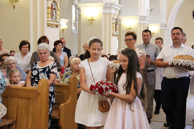 Życzył mieszkańcom parafii, aby byli złotymi kłosami tej ziemi. - Dzisiejsza uroczystość parafialna jest lekcją wiary, aby ją pogłębić, ożywić, aby uświadomić, że to my wszyscy jesteśmy złotymi kłosami ziemi stoleckiej. Życzę, abyście byli złotym plonem waszej parafii, diecezji kaliskiej, Kościoła w Polsce, naszej ojczyzny na miarę ziarna św. Wawrzyńca, które wpadłszy w ziemię nie umarło, ale ożyło i żyje po wieki, na miarę ziarna spalonego w Oświęcimiu o. Maksymiliana Kolbe, na miarę ziarna ks. Jerzego Popiełuszki, syna ziemi podlaskiej, na miarę ziarna ks. mjr. Ignacego Skorupki, który przy miedzy polnej pod Radzyminem padł w czasie napadu bolszewickiego. Bądźcie złotymi kłosami waszej ziemi, Kościoła i naszej ojczyzny i to jest plon na tegoroczne dożynki – powiedział metropolita gdański.