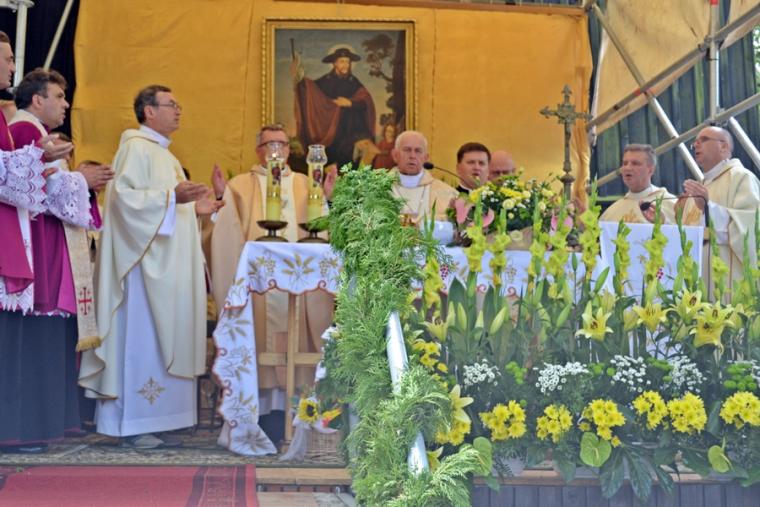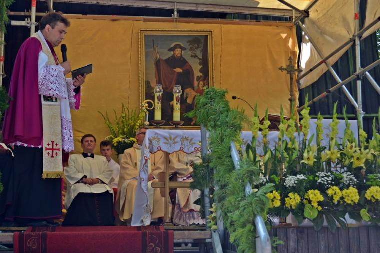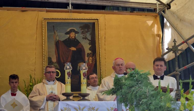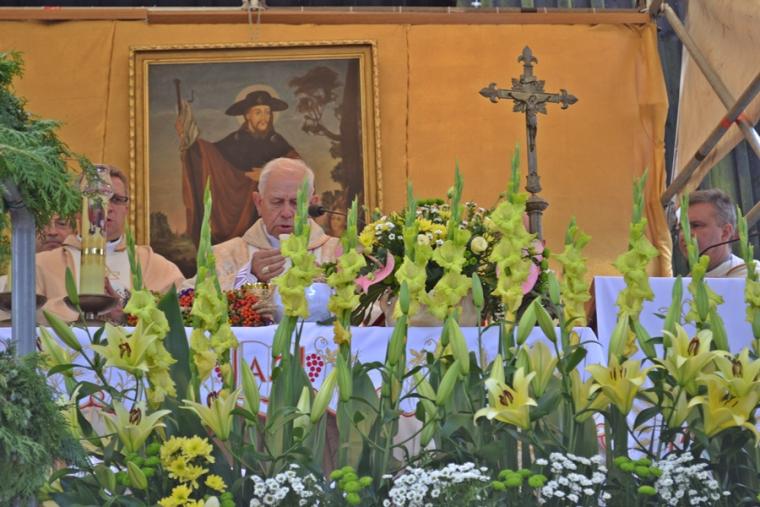 Uroczystej sumie odpustowej sprawowanej o godz. 11:00 przewodniczył ks. bp Senior Stanisław Napierała. Wcześniej bp Senior dokonał obrzędu błogosławieństwa zwierząt, który stanowi nierozłączny element uroczystości odpustowych ku czci św. Rocha w Mikstacie. Na początku Eucharystii ks. kan. Krzysztof Ordziniak, kustosz Diecezjalnego Sanktuarium Świętego Rocha w Mikstacie skierował słowa podziękowania za przybycie na uroczystości odpustowe do ks. Biskupa Stanisława Napierały. Wyraził radość z obecności ks. biskupa wśród nas. Ks. kustosz przywitał kapłanów, przedstawicieli władz, pielgrzymów, parafian. Poprosił następnie ks. Bpa, by sprawował tę sumę w intencji wszystkich pielgrzymujących na uroczystości odpustowe.