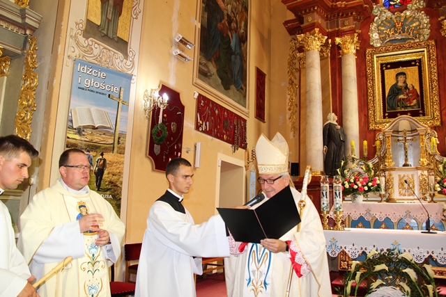 Podziękował proboszczowi oraz wiernym za troskę o świątynię i ustanowił ks. Łukasza Żurawskiego kanonikiem honorowym Kapituły Konkatedralnej w Ostrowie Wielkopolskim.