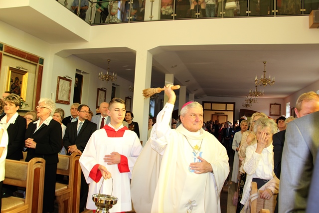 Witając biskupa, kapłanów i wiernych ks. Robert Lewandowski podkreślał, że ta świątynia została wybudowana trudem wielu ludzi. Dodał, że nie byłoby jej, gdyby nie charyzmatyczna postawa i szlachetne kapłańskie życie ks. prał. Józefa Sieradzana, który latach 80. odkrył potrzebę stworzenia w tym miejscu ośrodka duszpasterskiego, a potem parafii.