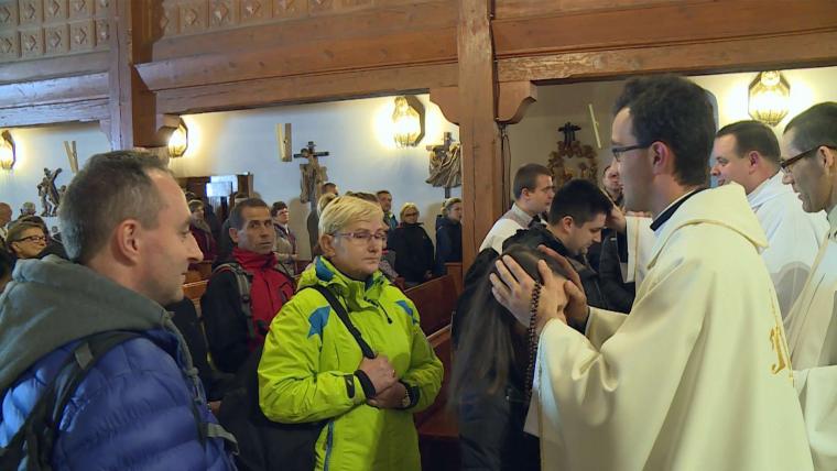 Podczas Mszy św. poświęcone zostały różańce, które każdy uczestnik otrzymał przy indywidualnym błogosławieństwie.