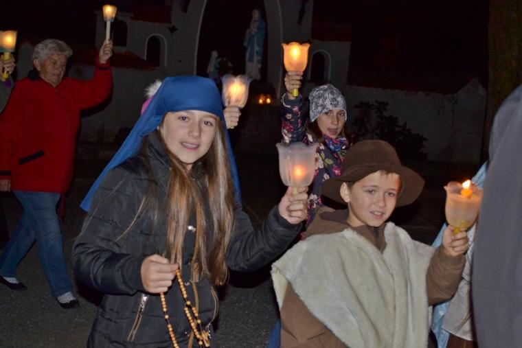 Po zakończeniu modlitwy różańcowej za krzyżem i figurą Matki Boże Fatimskiej ze śpiewem na ustach, z płonącymi lampionami wyruszyliśmy w procesji wokół kościoła. Po powrocie procesji do kościoła w łączności duchowej z Jasną Górą zaśpiewaliśmy Apel Jasnogórski. Ku niebu popłynęły słowa: Maryjo: jestem, pamiętam, czuwam.
