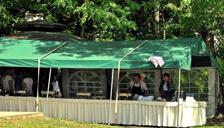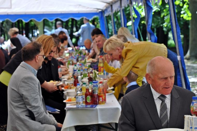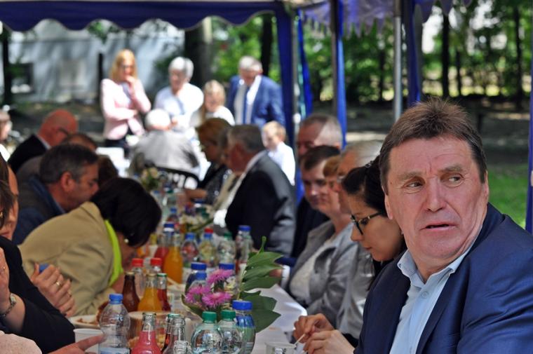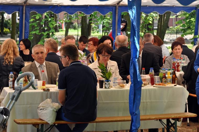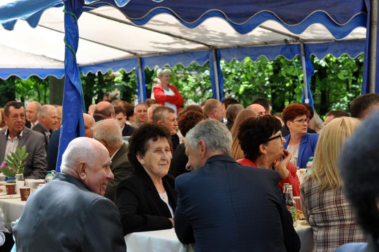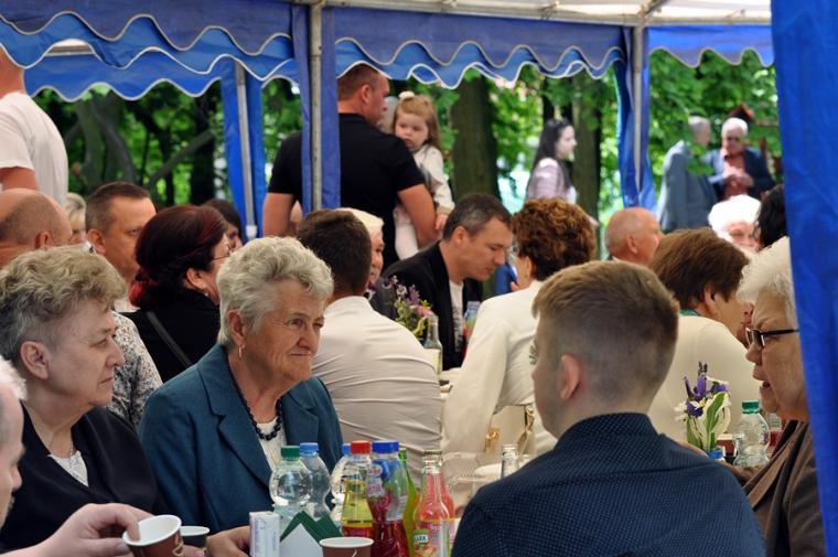 Po dziękczynieniu Panu Bogu nadszedł czas na radosne spotkanie w Parku Świętego Rocha. Dlaczego tam?  Wielkim pragnieniem księdza Jubilata było spotkanie się przy stole ze wszystkimi uczestnikami dziękczynnej Eucharystii. Żadna sala nie byłaby w stanie pomieścić wszystkich tych, którzy  w tym wyjątkowym dniu ofiarowali ks. Jubilatowi najcenniejszy dar – modlitwę.
