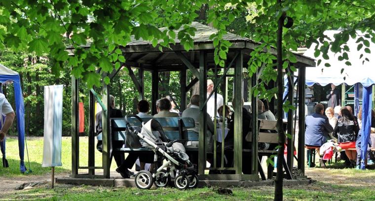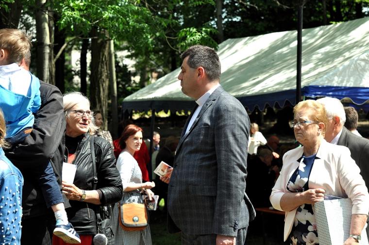 Ponadto, jak podkreślił ks. Jubilat,  ponawiając pod koniec mszy świętej zaproszenia na wspólne biesiadowanie obecny wygląd parku to zasługa pracy parafian. Warto jednak dodać, że pracy podjętej z inicjatywy ks. kanonika Krzysztofa. Gdy przed laty zaproponował rewitalizację parku parafialnego niewielu wierzyło, że jest ona możliwe. Znalazła się jednak grupa parafian, którzy z wielkim zaangażowaniem, poświęcając swój wolny czas trudzili się, by uporządkować teren dawnego parku. Potem przyszedł czas na jego zagospodarowanie, częściowe nasadzenie nowych drzew i krzewów. W parku pojawiły się ławki, altanki, plac zabaw, a na skalniku znalazło się miejsce dla figury św. Rocha. W parku organizowane są  festyny i  majówki. Tu postanowił świętować swój Srebrny Jubileusz  wraz z rodziną, zaproszonymi gośćmi i parafianami ks. kanonik Krzysztof.