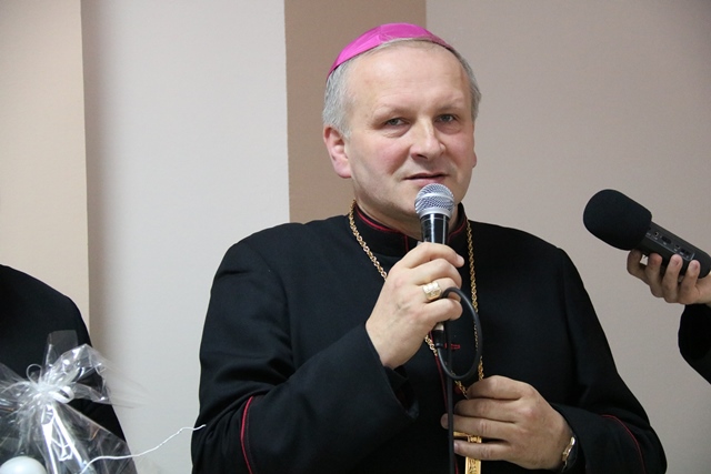 Druga część spotkania obyła się w refektarzu, gdzie bp Łukasz Buzun złożył katechetom życzenia i przełamał się opłatkiem. W spotkaniu wzięło udział ok. 300 katechetów.