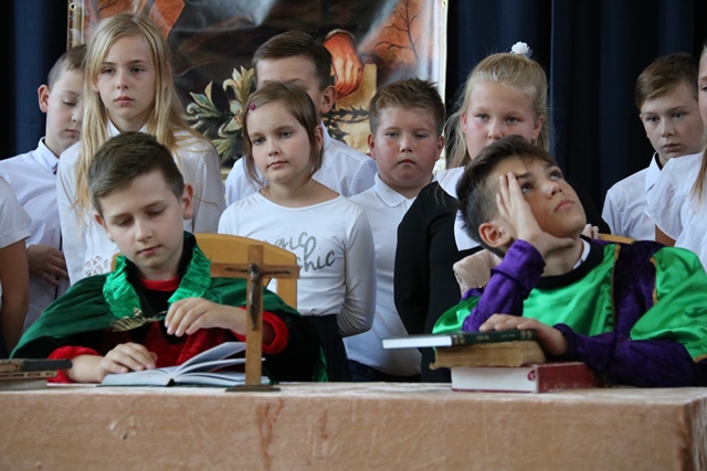 Druga część uroczystości odbyła w budynku szkoły w Przytocznicy, gdzie uczniowie w programie artystycznym ukazali życiorys swojego patrona.