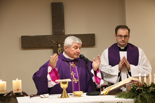 Po Mszy św. biskup kaliski Edward Janiak przełamał się opłatkiem z rodzinami i zasiadł do wspólnej wieczerzy.