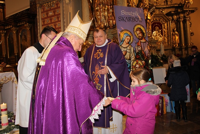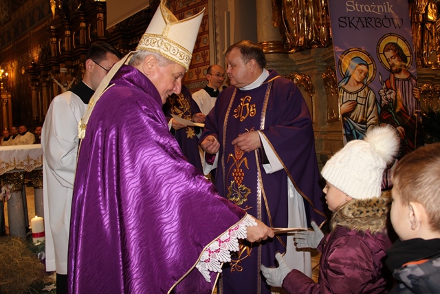 Biskup odmówił litanię do św. Mikołaja i udzielił błogosławieństwa Najświętszym Sakramentem. W czasie uroczystości rozstrzygnięto Międzyszkolny Konkurs o św. Mikołaju. Dyplomy i nagrody wręczył dzieciom bp Edward Janiak.