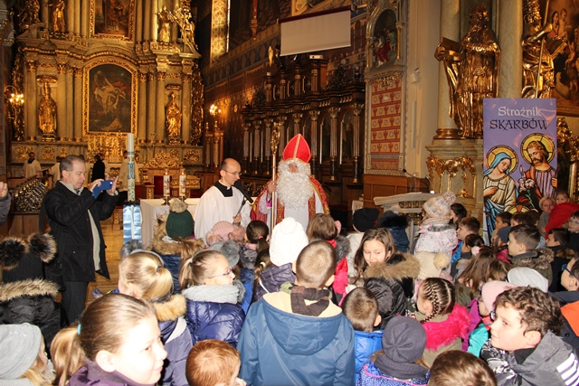 Po Mszy św. do katedry przybył św. Mikołaj, który obdarował wszystkie dzieci paczkami ze słodyczami.
