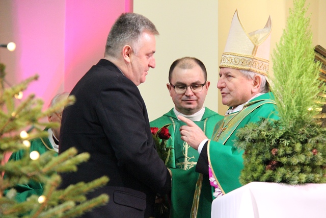 Spotkanie opłatkowe poprzedziła Msza św. w kościele św. Pawła Apostoła w Ostrowie Wielkopolskim pod przewodnictwem biskupa kaliskiego Edwarda Janiaka.