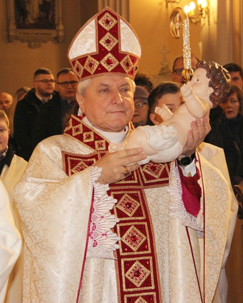 Przed rozpoczęciem Eucharystii w procesji biskup kaliski Edward Janiak zaniósł figurkę Dzieciątka do żłóbka.