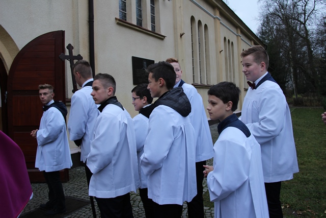 Wraz z biskupem kaliskim Edwardem Janiakiem modlili się: ks. Mirosław Lipka, proboszcz parafii Chrystusa Króla w Marszałkach, ks. Marek Zbaracki, ks. Dariusz Szyszka i kapłani z dekanatu grabowskiego z dziekanem ks. kanonikiem Ryszardem Ryńcem.