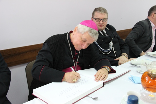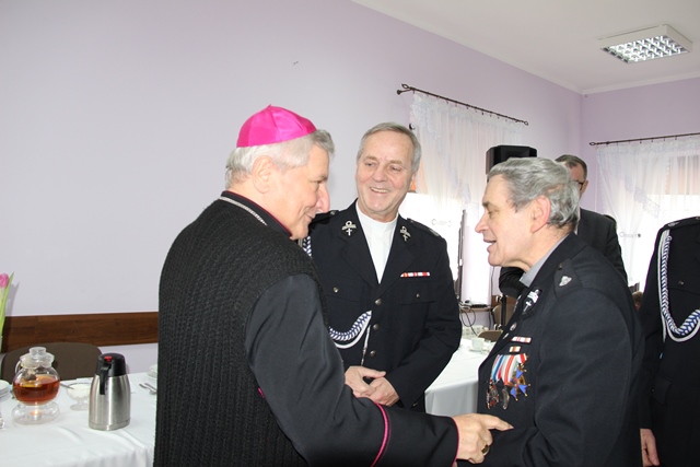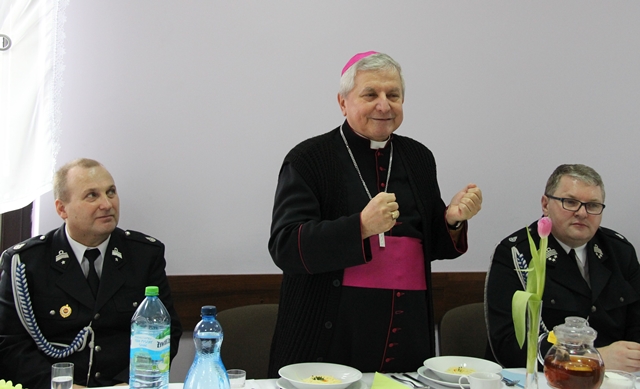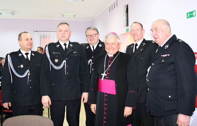 Biskupowi kaliskiemu Edwardowi Janiakowi podziękował za przewodniczenie w ubiegłym roku Mszy św. z okazji wielkopolskich wojewódzkich obchodów Dnia Strażaka w Krotoszynie i poświęcenie 41 nowych wozów strażackich, a także za życzliwość okazywaną strażakom.