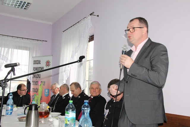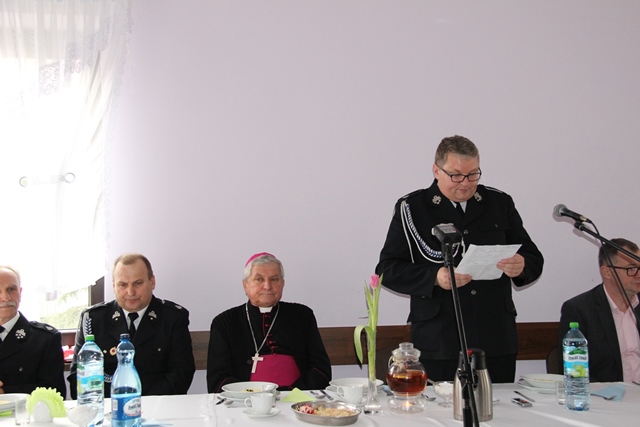 W swoim wystąpieniu bp Edward Janiak wskazywał na ważną rolę strażaków w życiu społeczeństw lokalnych. – Dziękuję wam, że wychowujecie młodych ludzi do ofiarności, poświęcenia dla drugiego człowieka, aby potrafili przejść z teorii do życia. Spełniacie w tym zakresie ogromną rolę. Wasza obecność szybko zorganizowana, w ciągu kilkunastu minut, ratuje ludziom życie - stwierdził ordynariusz diecezji kaliskiej.Biskup zapewniał o pamięci modlitewnej. Wyjawił, że raz w miesiącu odprawia Mszę św. w intencji strażaków.