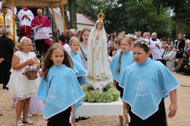 Podczas Mszy św. bp Artur Miziński poświęcił wieńce żniwne przyniesione przez rolników. Odpust zakończyła procesja wokół kościoła, błogosławieństwo Najświętszym Sakramentem i odśpiewanie hymnu „Boże coś Polskę”.