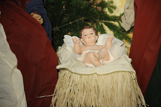 Przed rozpoczęciem Eucharystii w procesji bp Stanisław Napierała zaniósł figurkę Dzieciątka do żłóbka.