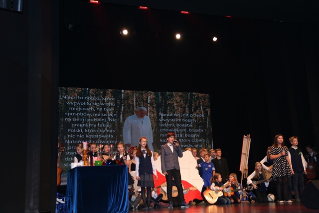 Zgromadzeni w Ostrowskim Centrum Kultury mieli okazję obejrzeć przedstawienie pt. „O wolności słowa Jana Pawła II” w wykonaniu uczniów Szkoły Podstawowej nr 6 w Ostrowie Wielkopolskim.