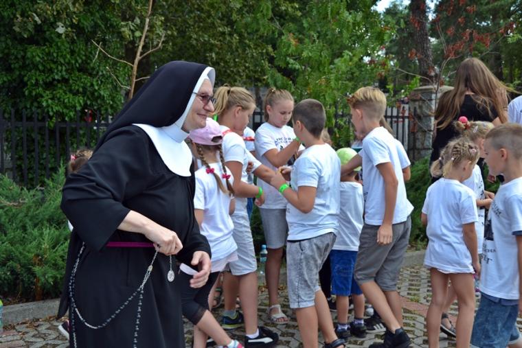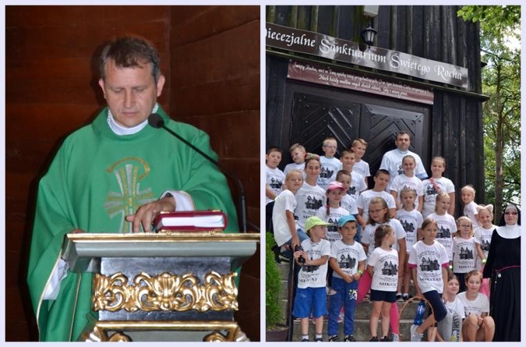 Trwają przygotowania duchowe do uroczystości odpustowych ku czci św. Rocha w Mikstacie. Mimo wakacyjnego, sobotniego dnia dzieci w godzinach przedpołudniowych przyszły na kolejne spotkanie w ramach VIII edycji Szkoły Świętego Rocha. Spotkanie rozpoczęło się modlitwą . Był w czasie tego spotkania czas na śpiew i zajęcia na świeżym powietrzu. Ich organizacją zajęła się s. Małgorzata. Były kolejne informacje o życiu św. Rocha. Święty Roch był pielgrzymem, a jego pielgrzymi szklak prowadził przez Francję i Włochy. Więc były w Rochowej Szkole zajęcia językowe. Poprowadziła je Pani Iza. Poprzez tegorocznej Szkoły młodzi poznają dziedzictwo kulturowe. W sobotnie przedpołudnie odbyli wirtualną wędrówkę szlakiem kapliczek, figur i krzyży przydrożnych znajdujących się w Mikstacie. Niespodziankę dla uczestników Rochowych spotkań przygotował ich inicjator i organizator ks. kan. Krzysztof Ordziniak. Jaką? Każde dziecko otrzymało „firmową” koszulkę Szkoły Świętego Rocha. Pięknie się w nich prezentują.