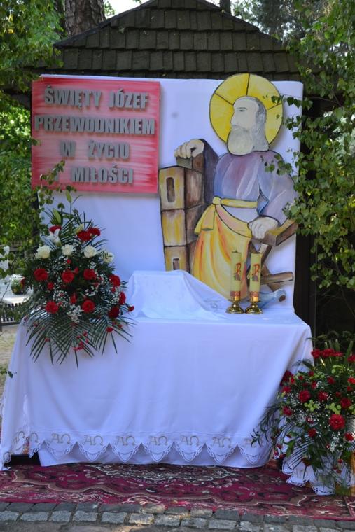 W drugiej części homilii kaznodzieja zatrzymał się na hasłach  umieszczonych  na poszczególnych ołtarzach. W związku z przeżywanym Rokiem św. Józefa  koncentrowały się  one wokół jego postaci. Na  pierwszym ołtarzu  możemy  przeczytać hasło: „ Święty Józef przewodnikiem w życiu i miłości”, na drugim: „Uczynił tak jak mu polecił Anioł Pański”. Kaznodzieja zaakcentował, że wielokrotnie w życiu nie wiemy, jak mamy postąpić, świat podpowiada nam różne rozwiązania. Podkreślił, że tych trudnych sytuacji nie brakowało  w życiu św. Józefa, ale on postępował tak jak mu Anioł polecił, gdyż jego serce było otwarte na Boga. „ Potrzeba nam takiego otwarcie naszych serc na Boga, na działanie Ducha Świętego”  - dodał ks. kanonik Krzysztof.  „Ojcowskim sercem - tak Józef umiłował Jezusa” te słowa znalazły się na trzecim ołtarzu. Kaznodzieja zaapelował do mężczyzn – ojców „ Panowie ojcowie zapytajcie się  dzisiaj, jakie to moje serce ojcowskie jest. Czy potrafię poświęcić czas dla moich dzieci. Ile tego czasu poświęcam, ale powiem więcej – ojcowskie serce, a więc ile czasu poświęcam żonie”. Na czwartym ołtarzu znalazły się słowa:„Miłość, która ukształtowała życie Świętej Rodziny”. Wyjaśniając te słowa celebrans zwrócił uwagę, że to właśnie miłość kształtuje nasze rodziny. Potrzeba nam zaufania Bogu, tak jak to czynił św. Józef zaakcentował kaznodzieja. W trzeciej części homilii ks. kanonik Krzysztof przypomniał, że od kilku lat ofiary składane przez wiernych podczas Eucharystii kończącej oktawę Bożego Ciała przeznaczane są na renowację naczyń liturgicznych. Udało się odnowić już wszystkie. W tym roku miał być odnowiony krzyż ołtarzowy, ale zgłosiła się osoba, która przechorowała cowid- 19 i przez prawie czterdzieści dni była pod respiratorem. Ten trudny czas pomógł jej przetrwać krzyż wiszący na ścianie w szpitalnej sali. W duchu dziękczynienia złożyła ofiarę na odnowienie krzyża ołtarzowego z sanktuarium. W związku  z tym ofiary zebrane w tym roku zostaną przeznaczone na odnowienie monstrancji z sanktuarium.
