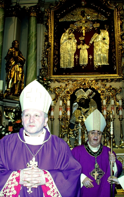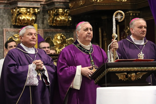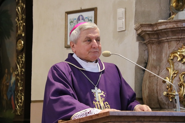 Dodał, że pełną odpowiedzią na słowo Boże jest czyn. - Starajmy się, by słyszane słowo Boże podczas liturgii słowa, rozważania męki Pańskiej, rekolekcji wielkopostnych, nabożeństw paschalnych, było wprowadzane w czyn. Byśmy byli, jak wasz Patron, ludźmi czynu – zachęcał hierarcha.