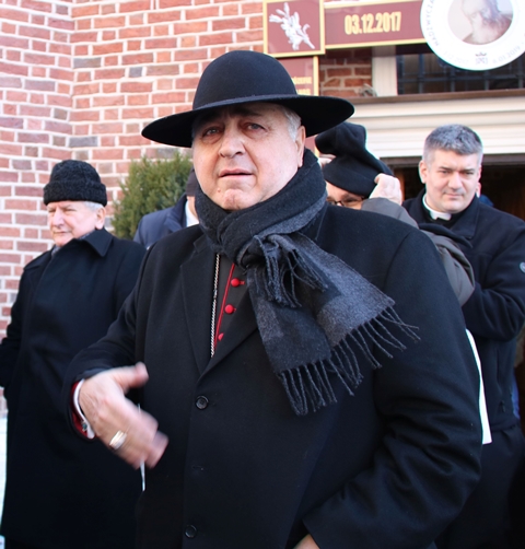 Przed udzieleniem błogosławieństwa nuncjusz apostolski wyjawił, że inaugurując Nadzwyczajny Rok Świętego Józefa Kaliskiego złożył św. Józefowi przyrzecznie, że przybędzie do Narodowego Sanktuarium św. Józefa w Kaliszu, aby modlić się za papieża Franciszka. – Pięć lat temu po wyborze na Stolicę Piotrową papież Franciszek zwrócił się do milionów osób, które były zgromadzone na Placu św. Piotra i prosił, aby modlić się za niego. My czynimy zadość tej papieskiej prośbie modląc się za jego posługę na rzecz pokoju i miłości, a szczególnie za osoby cierpiące. Przekażę te słowa o waszej modlitwie i proszę was nadal, abyście za przyczyną św. Józefa modlili się za Ojca Świętego – powiedział abp Pennacchio.