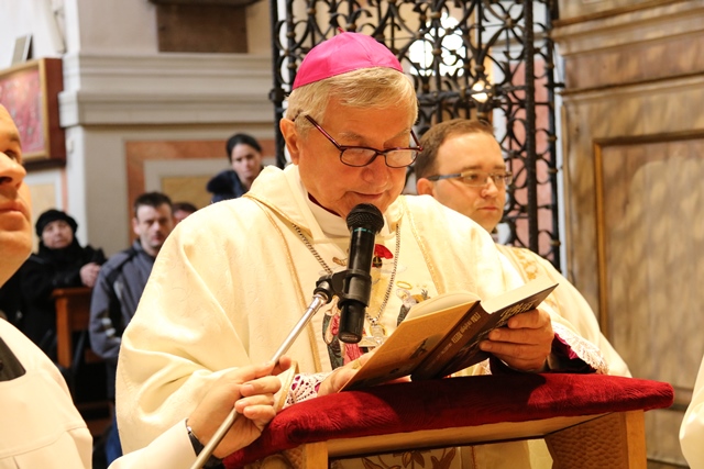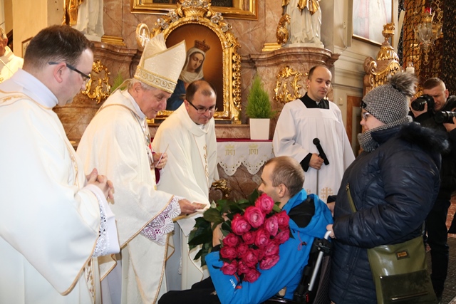 Stwierdził, że cierpienie złączone z krzyżem Chrystusowym nabiera sensu. - Cierpienie jest tajemnicą w życiu człowieka. Nigdy nie mówmy, że ktoś cierpi, bo go Pan Bóg skarał. Nie wiesz czy nie cierpi za mnie, za ciebie. Tylko cierpienie złączone z tajemnicą krzyża nabiera głębokiego sensu, ale my jako ludzie sprawdzamy się w naszej miłości do Boga poprzez wrażliwość na drugiego człowieka – podkreślił bp Janiak.