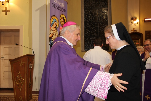 Zachęcał szafarzy, aby swoim życiem dawali świadectwo. - Prosimy was i mamy taką nadzieję, że sami będziecie dbać o czyste swoje wnętrze, bo Eucharystia daje siły najsłabszym do dawania świadectwa miłości do Boga i człowieka tak jak było u św. Matki Teresy z Kalkuty – przekonywał bp Janiak.