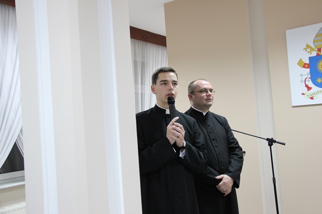 W imieniu kleryków przemówił alumn Tomasz Dytfeld, który życzył, aby każdy był świadkiem wielkiej światłości narodzonej w betlejemskiej grocie. – Ta światłość jest w stanie zmienić życie każdego z nas, bo On przynosi nam pokój, radość, a przede wszystkim przynosi nam miłość. Chciejmy tą miłością dzielić się ze wszystkimi, do których będziemy posłani – powiedział kleryk V roku.
