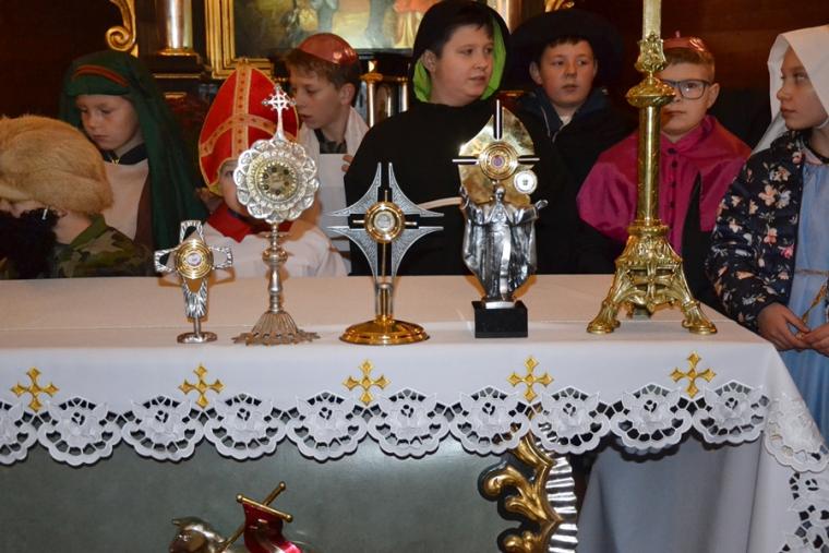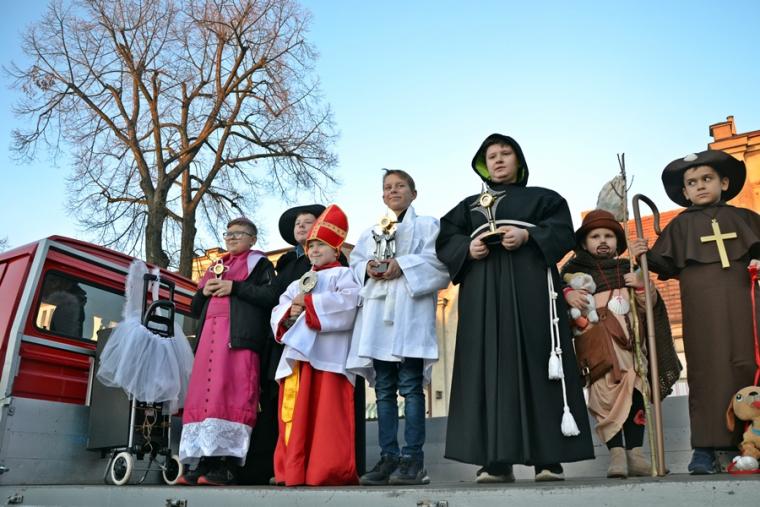 W parafii znajdują się relikwie św. Wojciecha, św. Zygmunta Szczęsnego Felińskiego, św. Maksymiliana Marii Kolbego, św. Jana Pawła II. Są i relikwie św. Rocha, ale te czekały na uczestników Marszu Świętych w sanktuarium. Zanim wyruszyliśmy na ulice miasteczka, ks. kan. Krzysztof Ordziniak, kustosz diecezjalnego Sanktuarium św. Rocha w Mikstacie przekazał relikwie tym dzieciom, które przebrały się za tych właśnie świętych. To te dzieci stanowiły czoło mikstackiego Marszu Świętych. Za nimi szły dzieci, które przebrały się za Świętego Rocha, patrona naszego sanktuarium, ale i miasta. Byli oczywiście i inni święci.