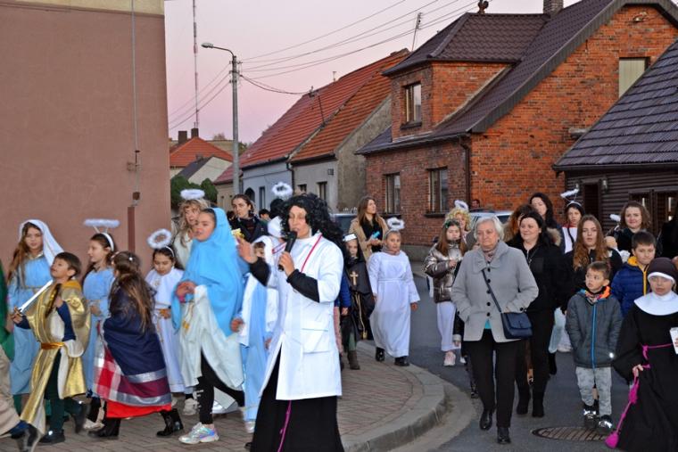 Przez cały październik od poniedziałku do piątku dzieci z mikstackiej parafii spotykały się na modlitwie różańcowej. Przyszły na nią także 29 października, ale przebrane za różnych świętych, bo po zakończonej modlitwie różańcowej odbył się ulicami Mikstatu Marsz Świętych. Jego trasa wiodła od kościoła farnego do Diecezjalnego Sanktuarium Świętego Rocha.