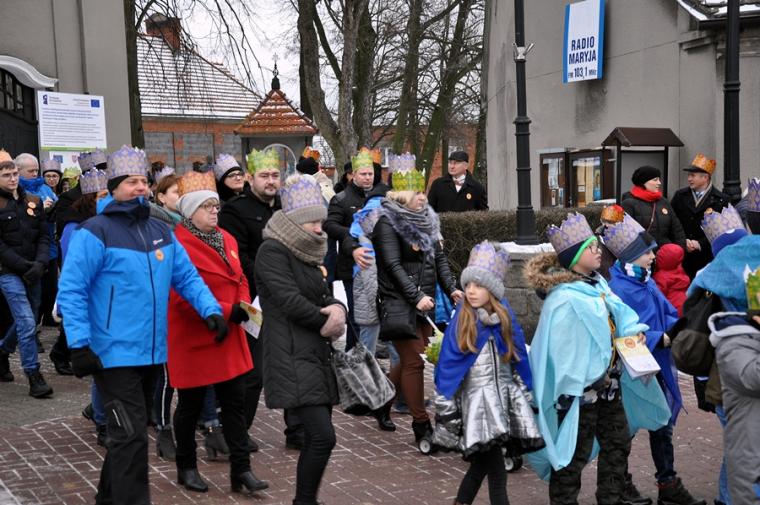Po prezentacji Trzech Królów zebrani w mikstackim kościele obejrzeli scenę wyjścia brzemiennej Maryi Józefa, odmówiona została modlitwa Anioł Pański, a następnie Orszak wyruszył na ulice miasta. Na przedzie szli harcerze z orszakowym sztandarem i chorągwiami poszczególnych królestw, następnie anioły, Trzej Królowie, brzemienna Maryja z Józefem i pozostali uczestnicy Orszaku. Śpiewając kolędy, w atmosferze radości, wszyscy przeszli na mikstacki Rynek pod figurę Najświętszego Serca Jezusowego. Tu mieli okazję zobaczyć dwie scenki przygotowane przez uczniów szkoły podstawowej w Mikstacie. Pierwsza ukazywała dwór Heroda, w którym panuje przepych, pycha, zazdrość, w którym odmiana oblicza utożsamiana jest ze zmianami wyłącznie zewnętrznymi. Zmiany, na których koncentrują się mieszkańcy dworu Heroda nie dotyczą odmiany wewnętrznej, nie odnoszą się do przemiany serca człowieka. W drugiej scence uczestnicy orszaku mogli zobaczyć gospodę, której drzwi były zamknięte dla Chrystusa, ale która proponowała człowiekowi wiele pokus, sprawiających, że żyje on w nieładzie moralnym.