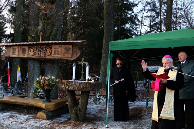 Biskup poświęcił miejsce kultu religijnego oraz pamięci ku czci leśników i myśliwych, a także posadził dąb.