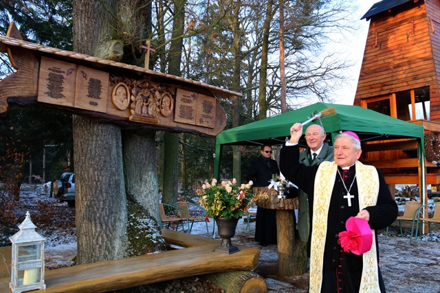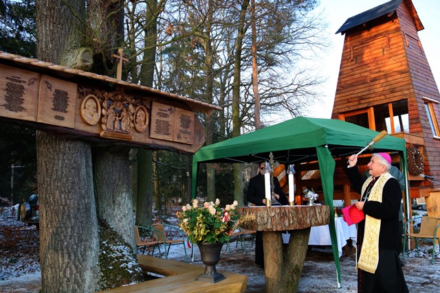 - Moim marzeniem było utworzenie w lesie miejsca kultu religijnego oraz pamięci ku czci leśników i myśliwych, którzy wyrośli z jednego pnia. Z racji obchodzonego Nadzwyczajnego Roku Świętego Józefa Kaliskiego umieściliśmy obraz Świętej Rodziny, a symbolami 100. rocznicy odzyskania przez Polskę niepodległości są rzeźby św. Jana Pawła II i Marszałka Józefa Piłsudskiego – powiedział w rozmowie z KAI myśliwy Józef Bażant z Koła Łowieckiego nr 37 „Słonka” w Dzierzbinie, który dodaje, że w wykonaniu dzieła pomogli mu artyści Tadeusz Jarczewski i Bolesław Białecki.