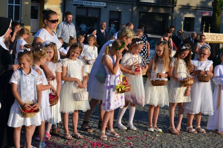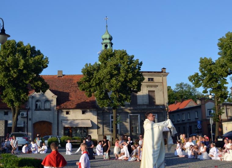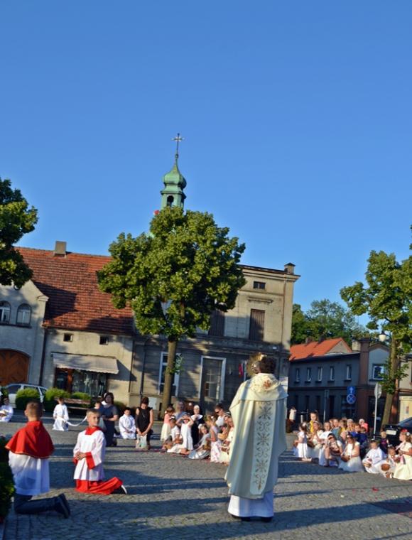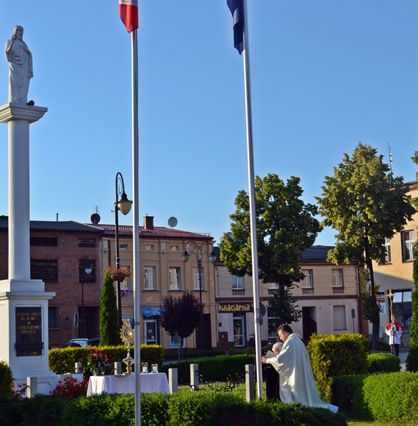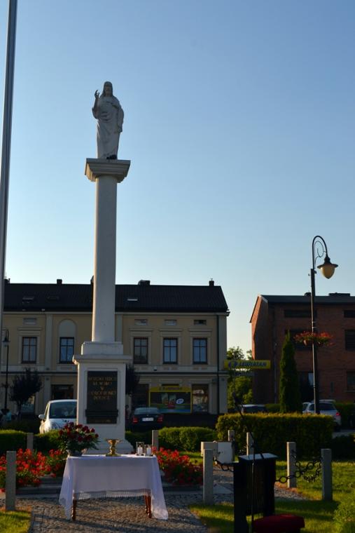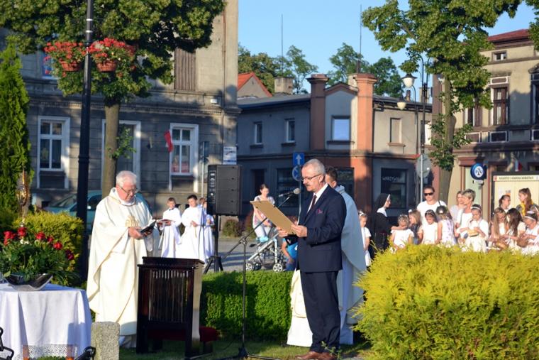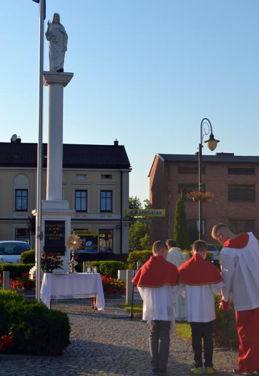 Po Mszy Świętej procesja z Najświętszym Sakramentem wyruszyła na rynek. Znajduje się tam figura Najświętszego Serca Pana Jezusa ufundowana przez mieszkańców. Została poświęcona 12. lipca 1936 roku Ks. Bpa Dymka. W czasie uroczystości poświęcenia ówczesny Burmistrz miasta Pan Franciszek Toboła odczytał akt poświęcenia się miasta Najświętszemu Sercu Pana Jezusa. 8. czerwca A.D. 2018 roku słowa aktu wybrzmiały ponownie. Odczytał je tym razem pełniący obecnie obowiązki Burmistrza Miasta i Gminy Mikstat pan Henryk Zieliński. Obecni na mikstackim rynku usłyszeli m.in. takie słowa: „Przychodzimy więc dzisiaj, by uznać całkowite panowanie Twoje nad miastem naszem. Chcemy odtąd Twojem życiem żyć, chcemy w sobie te cnoty pielęgnować, za które już tu na ziemi pokój obiecałeś(...). Panuj więc nad naszym rozumem przez prostotę wiary, panuj też przez swą miłość nad sercami naszemi, które niech całkowicie nią zapłoną. Chcemy je w Twej żarliwej miłości utrzymać przez częste przyjmowanie Komunii św. Racz, Boskie Serce, przewodzić naszym zebraniom, błogosław nasze duchowne i doczesne przedsięwzięcia, rozpraszaj nasze troski, uświęcaj nasze pociechy i łagódź nasze cierpienia". Jak aktualne pozostają nadal słowa wypowiedziane przed ponad osiemdziesięciu laty. Po odczytaniu aktu poświęcenia się miasta Najświętszemu Sercu Pana Jezusa wybrzmiały słowa pieśni: „Najświętsze Serce Boże, poświęcamy Ci Naszą Ojczyznę i nasze miasto, Nasze rodziny i nas samych; Serce Boże, przyjdź Królestwo Twoje”. W kontekście odnowionego aktu nabrały one wyjątkowego znaczenia. Następnie przy ustawionym nieopodal figury Najświętszym Sakramencie została odmówiona Litania do Najświętszego Serca Jezusowego. Następnie Ks. Kan. Krzysztof udzielił błogosławieństwa Najświętszym Sakramentem na cztery strony świata. Potem procesja powróciła do kościoła. Udział w uroczystościach ku czci Najświętszego Serca Pana Jezusa był publicznym wyznaniem wiary, świadectwem, dla tych, którzy nie dostrzegają jeszcze być może, bądź nie odkryli bogactwa miłości i wielości łask spływających na ludzkość z przebitego Serca Pana Jezusa.