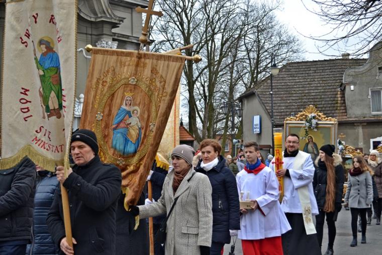 Zapewne wiele osób zna z Ewangelii św. Łukasza opis uczniów zmierzających do Emaus. Jerozolimę od miejscowości Emaus, do której zmierzali dzieliło około 12 kilometrów. Kilka godzin drogi, czasu na rozmyślanie, rozważnie i na spotkanie. To właśnie podczas tej drogi spotkali Chrystusa Zmartwychwstałego, którego początkowo nie poznawali. Poznali Go dopiero przy łamaniu chleba. W drogę do Emaus wyruszyli także jak co roku mikstaccy parafianie. Nie była to ta droga, którą wędrowali uczniowie Jezusa. Była znacznie krótsza, bo miała niecały kilometr, ale dla tych którzy w wietrzne popołudnie Święta Zmartwychwstania Chrystusa zdecydowali się w nią wyruszyć zapewne była bardzo ważna. Stanowiła okazję do refleksji, zadumy, modlitwy. Aby w nią wyruszyć wierni zebrali się o godz. 15:00 w parafialnym wieczerniku. Tu została odmówiona Koronka do Miłosierdzia Bożego oraz modlitwa i rozważanie trzeciego dnia Nowenny do Miłosierdzia Bożego. Mikstacka procesja do Emaus ma swoją wielowiekową tradycję. W tym roku przebiegała jednak nieco inaczej. Nie zmieniła się trasa mikstackiej drogi do Emaus i jak zwykle prowadziła z kościoła farnego do Diecezjalnego Sanktuarium Świętego Rocha na Cmentarnym Wzgórzu. Zazwyczaj w drodze towarzyszyła nam Orkiestra Parafialna. W tym roku z inicjatywy ks. proboszcza Krzysztofa Ordziniak podczas procesji do Emaus mieliśmy okazję przeżyć 14 spotkań ze Zmartwychwstałym Panem.