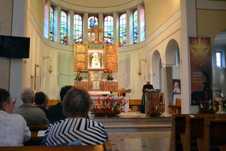 Jest już tradycją, w mikstackiej wspólnocie, że w okolicach dnia, w którym Kościół wspomina Najświętszą Maryję Pannę z Góry Karmel, popularnie nazywaną Matką Bożą Szkaplerzną pielgrzymujemy do Lichenia. W tym roku na pielgrzymi szlak wyruszyliśmy 17. lipca. Opiekunem duchowym liczącej prawie czterdzieści osób grupy był ks. proboszcz Krzysztof Ordziniak. Czas podróży do Lichenia wypełniony był śpiewem Godzinek i modlitwą różańcową. Spotkanie z licheńskim sanktuarium rozpoczęliśmy od nawiedzenia kościoła pw. Matki Bożej Dziesięciu Cnót Ewangelicznych. Stanowi on część kompleksu klasztoru Sióstr Anuncjatek. Tu ks. kan. Krzysztof przybliżył nam duchowość sióstr oraz zwrócił uwagę na ich wielobarwny strój. Regułę życia stanowi 10 Cnót Ewangelicznych Matki Bożej jako tej, która była: Najczystsza, Najroztropniejsza, Najpokorniejsza, Najwierniejsza, Najpobożniejsza, Najposłuszniejsza, Najuboższa, Najcierpliwsza, Najmiłosierniejsza, Najboleśniejsza. Kościół zachwyca prostym, pięknym, ale jednocześnie niezwykle wymownym wystrojem. Tabernakulum, krzyż, symbol Ducha Świętego i wypisanych 10 Cnót Ewangelicznych wskazuje na to, co w życiu człowieka powinno być najważniejsze. Potem na chwilę zatrzymaliśmy się w Kaplicy Sosny, miejscu gdzie Matka Boża objawiła się Mikołajowi Sikatce. Jak co roku podczas nawiedzenia licheńskiego sanktuarium w lesie grąblińskim odprawiliśmy drogę krzyżową. Tym razem jednak inaczej niż zazwyczaj. Dlaczego? Zawsze czas pomiędzy poszczególnymi stacjami wypełnialiśmy śpiewem, modlitwą różańcową. Tym razem ks. kan. Krzysztof zaproponował byśmy przeszli ją w milczeniu. Był to niezwykły czas refleksji, zadumy, której sprzyjała deszczowa pogoda. Pomiędzy poszczególnymi stacjami krzyż przejmowali uczestnicy pielgrzymi. Odczytywane przez ks. proboszcza rozważania zatytułowane „Droga trudnych pytań” i panująca po nich cisza pozwalały wsłuchać się w głos mówiącego do nas Boga. Pytania, które wybrzmiały przy poszczególnych stacjach, były rzeczywiście trudne i uświadamiały nam nasze braki, niedoskonałości w relacjach z bliźnimi, ale także skłaniały do refleksji nad przemijaniem. Pięknym duchowym przeżyciem była ta droga krzyżowa. O godzinie 10:00 uczestniczyliśmy w Bazylice Matki Bożej Bolesnej Królowej Polski we Mszy Świętej. Wśród kapłanów ją sprawujących był ks. kan. Krzysztof Ordziniak, który modlił się we wszystkich naszych intencjach. Wiele ważnych słów skierował kaznodzieja do pielgrzymów. Nawiązując do słów Ewangelii (Mt 11,20-24), zwrócił uwagę, że zapewne wiele osób dziwi się, jak ci, którzy słuchali słów Jezusa, widzieli cuda, które czynił mogło nie uwierzyć i nie nawrócić się. Zaakcentował jednak, że cuda dzieją się i dziś i są zaproszeniem do większej ufności. Celebrans podkreślił, że Eucharystia jest ucztą, na którą zostaliśmy zaproszeni przez Jezusa i Jego Matkę. Kaznodzieja zwrócił uwagę, że nasza obecność jest wyrazem wiary w Boga żywego, a jednocześnie zaproszeniem do tego, by każdego dnia podejmować trud nawracania. W dalszej części homilii kapłan wskazał, że Maryja także została zaproszona do wiary żywej. Jak podkreślił, to dzięki wierze Maryi Jezus dokonał pierwszego cudu. Maryja będąc mistrzynią życia duchowego jest dla nas wzorem wiary ufnej i żywej. Kapłan przekonywał, że jest Ona tą, która dostrzega ludzkie braki, zakłopotanie, potrzeby. W związku z tym zachęcał wiernych, by pozostawili u Jej stóp wszystkie bolączki i trudne sprawy. Apelował, by przylgnąć do serca Matki, która pomoże przetrwać nam trudne chwile. Kończąc homilię celebrans podkreślił potrzebę ciągłej modlitwy o łaskę żywej wiary. Po Mszy św. w bazylice można było wysłuchać koncertu organowego.Wielu udało się do kościoła św. Doroty, na Golgotę. Przede wszystkim był jednak czas na indywidualną modlitwę i refleksję. Wybierając się do tronu Matki Bożej Licheńskiej chcieliśmy jej przecież przedstawić prośby, podziękowania, podzielić się z Nią naszymi radościami i troskami. Po Mszy św. był właśnie ten czas, czas na osobiste spotkanie z Matką i Jej Synem.