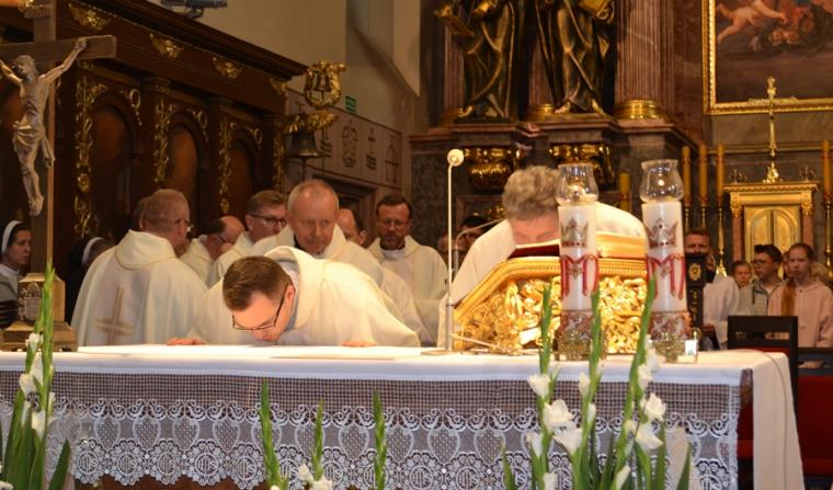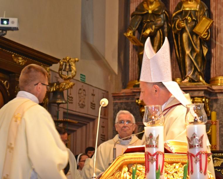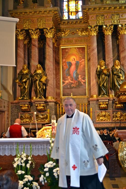 Trwa Nadzwyczajny Rok Świętego Józefa Kaliskiego. Sobota, 22 września była kolejnym dniem, kiedy Narodowe Sanktuarium Świętego Józefa nawiedziła liczna rzesza pielgrzymów z różnych zakątków kraju. Byli wśród nich m.in. pielgrzymi z Warszawy i okolic, Częstochowy, Gdańska, Zabrza, Białej Podlaski, Krakowa. Nie brakowało także grup z diecezji kaliskiej, której patronuje św. Józef. W Nadzwyczajnym Roku Świętego Józefa do sanktuarium pielgrzymują w soboty poszczególne parafie kaliskiej diecezji. W ostatnią sobotę czas swego spotkania ze św. Józefem przeżywały parafie: Sulmierzyce, Uszyce, Łąkociny, Uszyce i Mikstat. Grupa parafian mikstackich udała się do Kalisza pod opieką duchową ks. kan. Krzysztofa Ordziniaka. Dodajmy, że ks. kanonik przez dwa i pół roku posługiwał jako wikariusz w Kaliskim Sanktuarium. Tu, jak często podkreśla, obserwując ks. prałata Jacka Plotę, kustosza zdobywał doświadczenie w posługiwaniu pielgrzymom. Okazało się ono bardzo cenne i pomocne, bo dziś sam pełni posługę kustosza w Diecezjalnym Sanktuarium Świętego Rocha w Mikstacie. Wypełnił się pielgrzymami Polski Nazaret w sobotnie przedpołudnie. Na początku spotkania ks. prałat Jacek Plota, kustosz Narodowego Sanktuarium Świętego Józefa przybliżył zebranym historię powstania obrazu. Podkreślił jednocześnie, że wierni modlą się do św. Józefa w bardzo różnych sprawach mi. in. o potomstwo, o budowę domu, o pracę, o znalezienie drugiej połowy, o zdrowie. Polecają św. Józefowi wiele trudnych spraw. O godz. 11:00 odbyło się uroczyste odsłonięcie „ Cudownego Obrazu” Świętego Józefa Kaliskiego. Konferencję tematyczną o św. Józefie wygłosił ks. Szymon Rybak, który przez pięć lat posługiwał jako wikariusz w tym sanktuarium. Rozpoczynając ks. Szymon podkreślił, że nie jest przypadkiem, że się tutaj w tym Narodowym Sanktuarium Świętego Józefa znaleźliśmy. Jak podkreślił, gdy patrzymy na życie z perspektywy wiary to nic nie jest przypadkiem. Zaakcentował, że jeśli tu jesteśmy to Pan Bóg chce nam coś powiedzieć. Zwrócił uwagę, że czasami trudno nam jest przyjąć, zwłaszcza w chwilach trudnych doświadczeń, że Pan Bóg jest obecny w całym naszym życiu. Podkreślił, że św. Józef nazywany jest „milczącym Świętym”, ale mimo to może nam bardzo dużo powiedzieć. Kontynuując ks. Szymon zapytał: czego nas uczy dziś św. Józef? Zwrócił uwagę, że św. Józef jest nazywany patronem na nasze czasy, patronem Kościoła, patronem rodzin, patronem małżeństw, ludzi pracy. Zachęcał, by przyjrzeć się obrazowi, znajdującemu się w Kaplicy Cudownego Obrazu. Zaznaczył, że chciałby zatrzymać się na chwilę na sprawie, którą spychamy na ostatni plan - na śmierci. Przypomniał, że Święty Józef jest patronem dobrej śmierci. Wyjaśnił co to określenie dobra śmierć oznacza. Wskazał na trzy jej wyznaczniki: zasnąć spokojnie i nie cierpieć, odejść w gronie najbliższych i wreszcie odejść będąc pojednanym z Bogiem i Kościołem. Zachęcał, by nie uciekać od tematu śmierci, myślenia o niej, bo życie każdego kiedyś się skończy. W dalszej części konferencji ks. Szymon zwrócił uwagę na kształt obraz. Podkreślił, że ma on charakterystyczne ścięcia do góry, dzięki nim jego kształt kojarzy się z domem. Zebrani w Narodowym Sanktuarium św. Józefa przybyli tu z konkretnych domów-dodał. Pytał, co świadczy o wielkości naszych domów w czasach współczesnych. Zaznaczył, że o wielkości domu nie świadczą zgromadzone w nim dobra materialne, ale panująca atmosfera, więzi, relacje łączące osoby w nim mieszkające. Dalej ks. Szymon pytał: „ Z jakiego domu przyjechałeś? Czego ci w życiu brakuje? Może właśnie tego, normalnej atmosfery, atmosfery miłości i szacunku. Dzisiaj św. Józef chce być tym, który chce temu wszystkiemu zaradzać”. Ponadto kapłan zwrócił uwagę, że patrząc na obraz w linii pionowej widzimy Trójcę Przenajświętszą: Boga Ojca, Syna Bożego i Ducha Świętego, natomiast w linii poziomej trójcę ziemską Boga- Człowieka Jezusa, Józefa i Maryję. Zwrócił uwagę, że twarz Boga Ojca i św. Józefa jest taka sama. Wyjaśnił, że głową Świętej Rodziny był św. Józef. To on jako mąż i jako ojciec zaradzał problemom, uczył modlitwy Jezusa. Kontynuując podkreślał, że św. Józef jest tym, który może zaradzić naszym potrzebom, możemy do niego przychodzić ze wszystkim, bo on chce byśmy zaprosili go do tego wszystkiego co dla nas trudne. Kolejną kwestią na którą, jak podkreślił głoszący konferencję, warto zwrócić uwagę patrząc na obraz św. Józefa Kaliskiego jest rodzina. Podkreślał, że źródło tego z czym przychodzą, przyjeżdżają pielgrzymi tkwi w rodzinie. Zachęcał, by patrząc na obraz dostrzec, że dłonie Jezusa i Maryi splecione są w Jezusie i dodał, że siłą ich małżeństwa i rodziny jest Bóg. Ks. Szymon postawił zebranym pytanie: gdzie w twoim domu jest Bóg?W dalszej części konferencji kapłan zwrócił uwagę na liczne wota znajdujące się w sanktuarium i opowiedział dwa świadectwa ukazujące skuteczność orędownictwa św. Józefa. Kończąc ks. Szymon podkreślił, że nie ma takiej sytuacji w naszym życiu, której Bóg nie może zmienić. Podkreślił, kolejny raz, że nie jest przypadkiem, że się tu dzisiaj znaleźliśmy i prosił „Niech Święty Józef będzie dla nas dzisiaj opiekunem. Amen”.