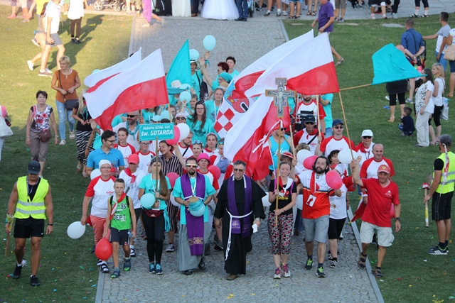 Jako pierwsza na Jasną Górę weszła grupa różowo-niebieska z Narodowego Sanktuarium św. Józefa w Kaliszu, której przedstawiciele nieśli obraz św. Józefa Kaliskiego. Na czele szli: bp Łukasz Buzun i ks. prał. Jacek Plota, kustosz kaliskiej bazyliki. – Aspekt Nadzwyczajnego Roku Świętego Józefa Kaliskiego podkreśliło wejście na Jasną Górę z obrazem św. Józefa, który na początku istnienia diecezji kaliskiej peregrynował po wszystkich parafiach i teraz umieszczony jest w kaplicy seminaryjnej. Było to symboliczne przejście św. Józefa do Maryi, czyli z Narodowego Sanktuarium św. Józefa do Narodowego Sanktuarium Matki Bożej – zaznacza ks. Rafał Grzęda.