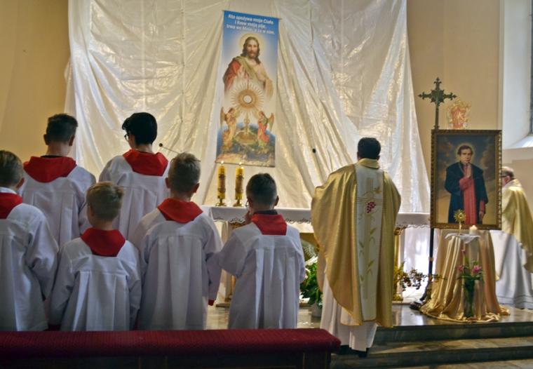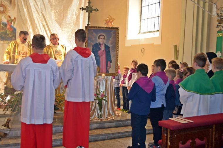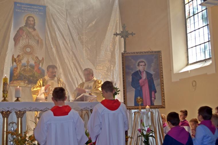 16 września, w przededniu liturgicznego wspomnienia św. abpa Zygmunta Szczęsnego w Mikstacie została zorganizowana „Niedzielę ze Zygmuntem Szczęsnym Felińskim”. Najważniejszym wydarzeniem tej „ Niedzieli” była msza święta sprawowana o godz. 11:00 w intencji Zgromadzenia Sióstr Franciszkanek Rodziny Maryi, podopiecznych, przyjaciół, dobroczyńców i czcicieli św. Zygmunta Szczęsnego Felińskiego. Przewodniczył jej ks. kan. Krzysztof Ordziniak. Wraz z nim przy ołtarzu stanął ks. kan. Grzegorz Klapa. Na początku mszy świętej został zaprezentowany program słowno-muzyczny przygotowany pod kierunkiem s. Anety Pielachy przez dzieci ze Świetlicy Środowiskowej prowadzonej przez Duchowe Córki św. Abpa Zygmunta Szczęsnego. Homilię podczas Eucharystii wygłosił ks. kan. Grzegorz Klapa. Rozpoczynając podkreślił, że w 100-lecie niepodległości obchodzimy 123 rocznice narodzin dla nieba św. Zygmunta Szczęsnego Felińskiego. Kaznodzieja zaznaczył, że pragnie zatrzymać się dzisiaj nad życiem tego świętego. Jak zaznaczył, całe jego życie zamyka się w XIX wieku, na czas, gdy Polska nie istniała na mapie Europy. Ks. kan. przypomniał najważniejsze wydarzenia z życia przyszłego Świętego. Przywołamy tutaj niektóre z nich. Urodził się 1 listopada 1822 roku na Wołyniu. Jego rodzicami byli Gerard i Ewa. Po narodzeniu został ochrzczony „z wody”, a ceremonii chrzcielnej dopełnił 13 grudnia ks. kan. ks. kan. Michał Maniecki, proboszcz Skorecki. Od rodziców Zygmunt Szczęsny uczył się miłości do Boga i Ojczyzny. Wzrastał w atmosferze szacunku dla tradycji i historii. Kaznodzieja uwagę, że to w domu rodzinnym zdobył Szczęsny fundamenty wiary w Boga i stąd wyniósł zasady moralności chrześcijańskiej. Tu także rozpoczął swoją formację intelektualną. Szybko jednak dla przyszłego Arcybiskupa kończy się czas szczęśliwego dzieciństwa. W wieku 11 lat został osierocony przez ojca, a gdy miał lat 17 jego matka zostaje zesłana na Syberię. Po wywiezieniu matki na Syberię trafił pod opiekę Zenona Brzozowskiego i dzięki jego wsparciu finansowemu studiował w Moskwie matematykę. Tu zetknął się ze środowiskiem obojętnym religijnie, nie osłabiło to jednak jego wiary, ale wręcz przeciwnie umocniło go wewnętrznie. Po studiach rozpoczął praktykę rządową w kancelarii gubernatora w Moskwie, aby uzyskać tzw. „ rangę urzędniczą”, a następnie przez dwa lata pracował u swego opiekuna, który - jak dodał kaznodzieja- wysłał go za granicę, aby mógł rozwijać swoje zdolności intelektualne. Trasa jego podróży wiodła przez Lwów, Kraków, Wiedeń, Pragę, Drezno, Berlin, Brukselę. Przez trzy lata przebywał w Paryżu, gdzie studiował na Sorbonie. W tym okresie spotkał wielu przedstawicieli polskiej emigracji m.in. księcia Adama Czartoryskiego, Juliusza Słowackiego. Kontynuując kaznodzieja zwrócił uwagę na rok 1851. W styczniu tego roku Zygmunt Szczęsny Feliński wraca do kraju, a w październiku wstępuję do Seminarium Duchownego w Żytomierzu. Po roku został wysłany na dalsze studia do Rzymskokatolickiej Akademii Duchownej w Petersburgu. Święcenia kapłańskie otrzymał 8 września 1855 roku. Po święceniach ks. Zygmunt Szczęsny Feliński przez dwa lata posługiwał jako wikariusz w parafii św. Katarzyny w Petersburgu, która prowadzona była przez Ojców Dominikanów. Wymieniając zasługi ks. Zygmunta Szczęsnego ks. kanonik zwrócił uwagę na założenie przez niego Schroniska dla ubogich rzymskokatolickiego wyznania, a także założenie żeńskiego zgromadzenia zakonnego Rodziny Maryi. Siostrom tym powierzył opiekę nad sierotami i starcami w schronisku. Ponadto zasłynął jako wybitny kaznodzieja. W 1857 roku został powołany na kapelana i ojca duchownego alumnów Akademii Duchownej. Zajmując się formacją przyszłych kapłanów zaszczepiał w ich sercach gorliwość apostolską, miłość Kościoła, wierność prawu kanonicznemu, posłuszeństwo władzy kościelnej, przywiązanie do Stolicy Apostolskiej, a także miłość do Ojczyzny i potrzebę pracy dla niej. Ks.Zygmunta Szczęsnego sprawował posługę w Petersburgu do 6 stycznia 1862 roku, kiedy to papież Pius IX mianował go Arcybiskupem Warszawskim. Konsekracja odbyła się w 26 stycznia 1862 roku w kościele Świętego Jana Jerozolimskiego, po niej Arcybiskup opuścił Petersburgu. Warszawa przyjęła chłodno nowego pasterza. Jego pasterzowanie w stolicy przypadło na trudny czas manifestacji patriotycznych i wybuchu powstania styczniowego – kontynuował kaznodzieja. Jego posługa w Archidiecezji Warszawskiej trwała od 9 lutego 1862 roku do 14 czerwca 1863. W tym czasie abp Feliński wizytował parafie, kładł duży nacisk na głoszenie słowa Bożego i katechizację dzieci. Szerzył kult Najświętszego Sakramentu i Matki Bożej, upowszechnił w Archidiecezji nabożeństwo majowe, polecił kapłanom troskę o trzeźwość Narodu. Popierał rozwijający się ruch franciszkański i sam wstąpił w jego szeregi. W czerwcu 1863 roku opuścił Warszawę. Był przez trzy tygodnie internowany, a następnie zesłany do Jarosławia nad Wołgą, gdzie spędził dwadzieścia lat. Mimo represji i ograniczeń policyjnych prowadził działalność apostolską i dobroczynną wśród katolików Jarosławia oraz zesłańców polskich. Wiele czasu spędza na modlitwie o pomyślność Kościoła w Ojczyźnie. Jarosław mógł opuścić dopiero w 1883 roku, nie mógł jednak powrócić do Warszawy. Leon XIII przeniósł go ze stolicy arcybiskupiej warszawskiej na tytularne arcybiskupstwo Tarsu. Ostatnich 12 lat życia spędził w galicyjskiej wsi Dźwiniaczka służąc ludowi wiejskiemu sprawując Eucharystię, głosząc słowo Boże, spowiadając. Cieszył się wielkim szacunkiem i uznaniem, postrzegany był jako święty człowiek. Zmarł 17-go września 1895 roku w Krakowie. Został beatyfikowany przez Jana Pawła II 18 