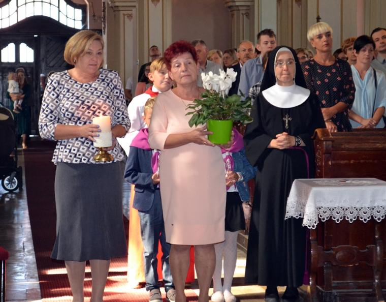 W procesji z darami przyniesiono: płonącą świecę, kwiaty, wodę i wino, hostię oraz dar duchowy intencje zanoszone przez wstawiennictwo św. Zygmunta Szczęsnego Felińskiego. Przed końcowym błogosławieństwem odczytana została modlitwa o uproszenie łask za wstawiennictwem Świętego Szczęsnego. Od 2014 roku w kościele farnym znajdują się relikwie Założyciela Zgromadzenia Sióstr Franciszkanek Rodziny Maryi. Po końcowym błogosławieństwie była możliwość ich uczczenia.