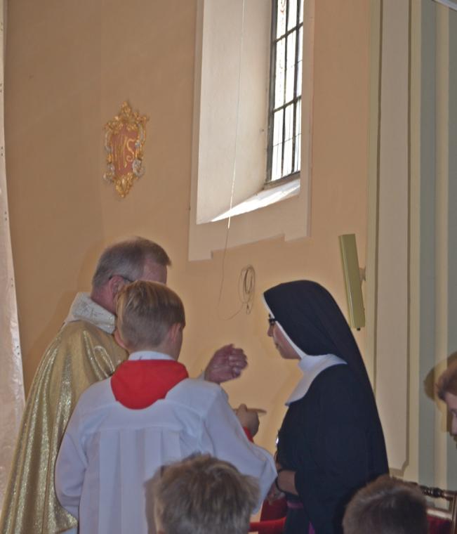 Siostry Franciszkanki Rodziny Maryi od 1921 roku posługują w naszej mikstackiej parafii. Starania o to, by w Mikstacie powstał Dom Zakonny podjął budowniczy kościoła farnego ks. Franciszek Ruszczyński. Na przestrzeni lat posługiwało w naszej wspólnocie wiele sióstr. Podejmowały posługę zgodnie z charyzmatem i zadaniami powierzonym im przez Ojca Założyciele. Starsze pokolenie Mikstaczan z wielkim wzruszeniem opowiada do dziś o ochronce prowadzonej przez Siostry. Ponadto Siostry opiekowały się chorymi w domach, katechizowały. Obecnie w Domu Zakonnym Sióstr Franciszkanek Rodziny Maryi w Mikstacie na ul. Kaliskiej mieszkają cztery Siostry: s. Sylwia Kanak, s. Helena Południuk, s. Aneta Pielacha i s. Bogusława Gajowska. Siostra Sylwia pełni funkcję przełożonej. To s. Sylwia zajmuje się dekorowaniem kościoła, posługuje jako zakrystianka. Wielką miłością i troską obdarza św. Rocha. Siostra Helena zajmuje się kuchnią, świetnie piecze i gotuje. Uczestniczy w prawie wszystkich wyjazdach pielgrzymkowych organizowanych w parafii i zawsze obdarza wszystkich dobrym słowem i promiennym uśmiechem. Z kolei s. Aneta działa w reaktywowanej Świetlicy Środowiskowej prowadzonej przez Siostry. Obdarzona pięknym głosem i umiejętnością gry na gitarze śpiewa w parafialnej scholi, ale także pisze ikony. Siostra Bogusława jest wśród nas od niedawna, uczy w szkole religii. Będzie m.in. przygotowywała dzieci do pierwszego pełnego uczestnictwa w Eucharystii. Każda z Sióstr ma swoje obowiązki, zadania. Siostry są jednak wielkim skarbem przede wszystkim dlatego, że obejmują modlitwą dzieła podejmowane w parafii. Piękna i niezwykle podniosła uroczystość, w której uczczono założyciela Zgromadzenia Sióstr Franciszkanek Rodziny Maryi dobiegła końca. Czas świętowania dobiega końca, a znów w poniedziałek w świetlicy środowiskowej pojawiły się dzieci, siostry podejmą katechezę i posługę w kościele i tak jak nakazał im ich Tato- Święty Zygmunt Szczęsny uczynią to wszystko w duchu pokory i prostoty. A dla wiernych niech ten dzień będzie zachętą do pochylenia się nad pozostawionymi dziełami Zygmunta Szczęsnego Felińskiego. Pozwolą nam one lepiej poznać tę wielką postać. Być może pomoże nam to dostrzec i odkryć ważną prawdę, że także w dzisiejszych czasach Świętych można naśladować, można żyć wartościami, które dla nich były istotne i doprowadziły ich do chwały nieba...